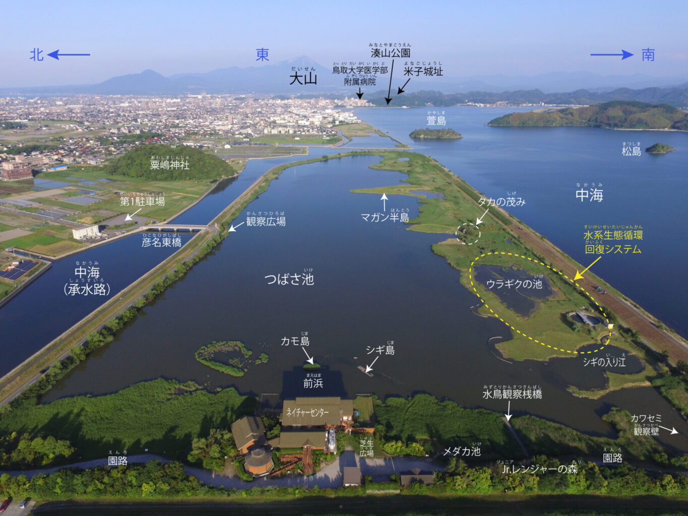 米子水鳥公園は野鳥が安心して暮らせる環境を保つため、保護区(立ち入り禁止区域)を設けています。園内で立ち入ることのできるエリアは、以下の場所です。